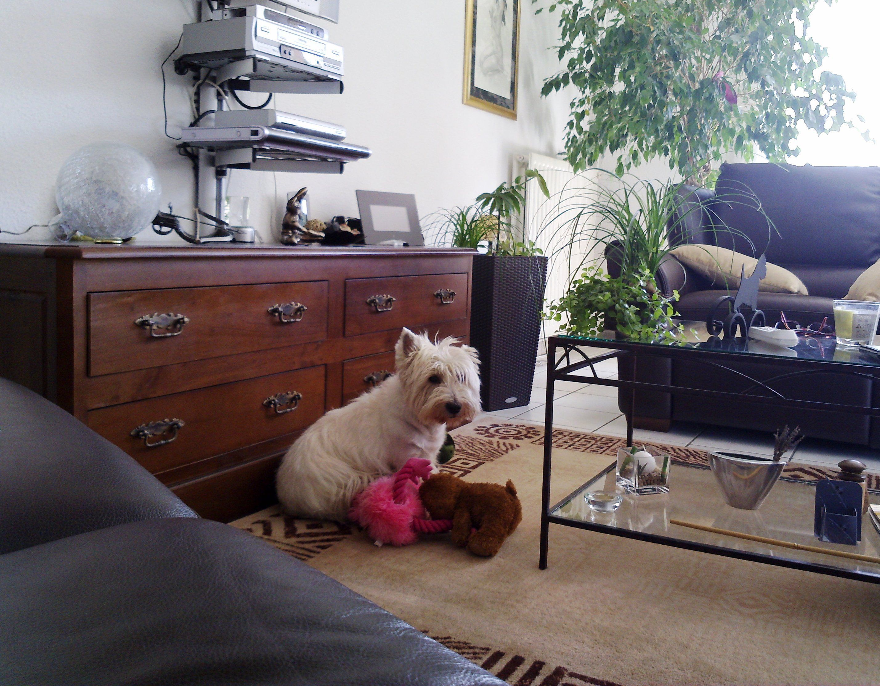D'habitude, ils sont lachés tous les deux. Mais depuis quelques mois, le mur de nos hôtes a été abattu en vue de travaux cadastraux et hélas... Rien est fait.