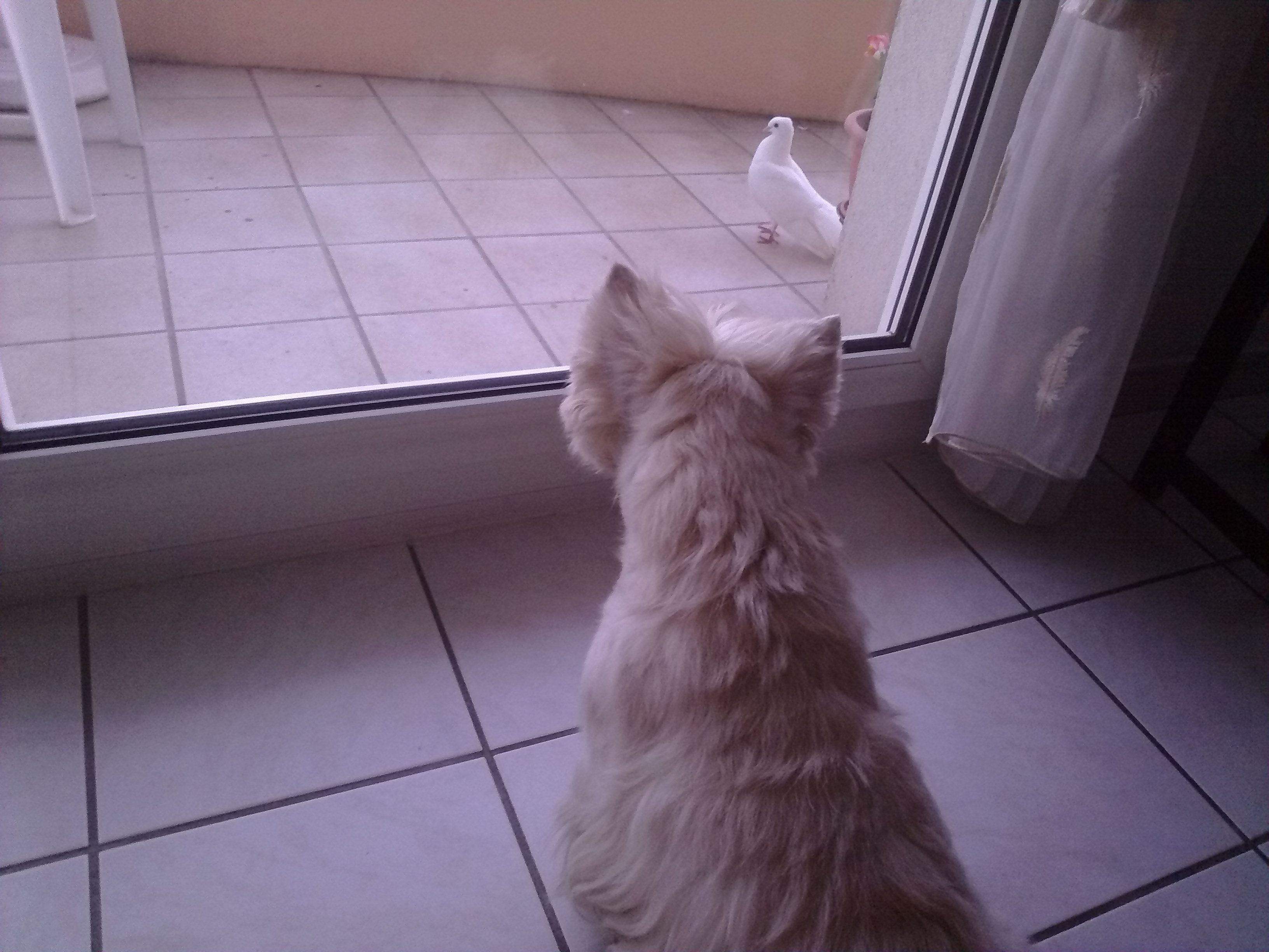 Une colombe a atterit sur notre balcon, elle est restée un petit moment...