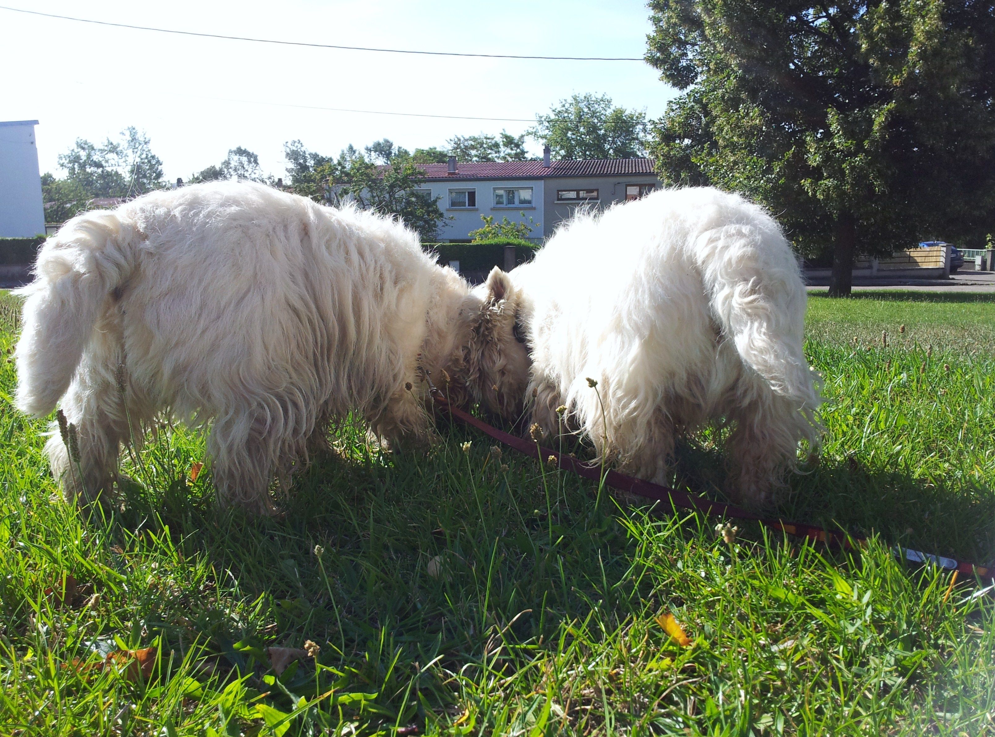 Quand Picsou ( laisse rouge ) et Bounty ( laisse grise )